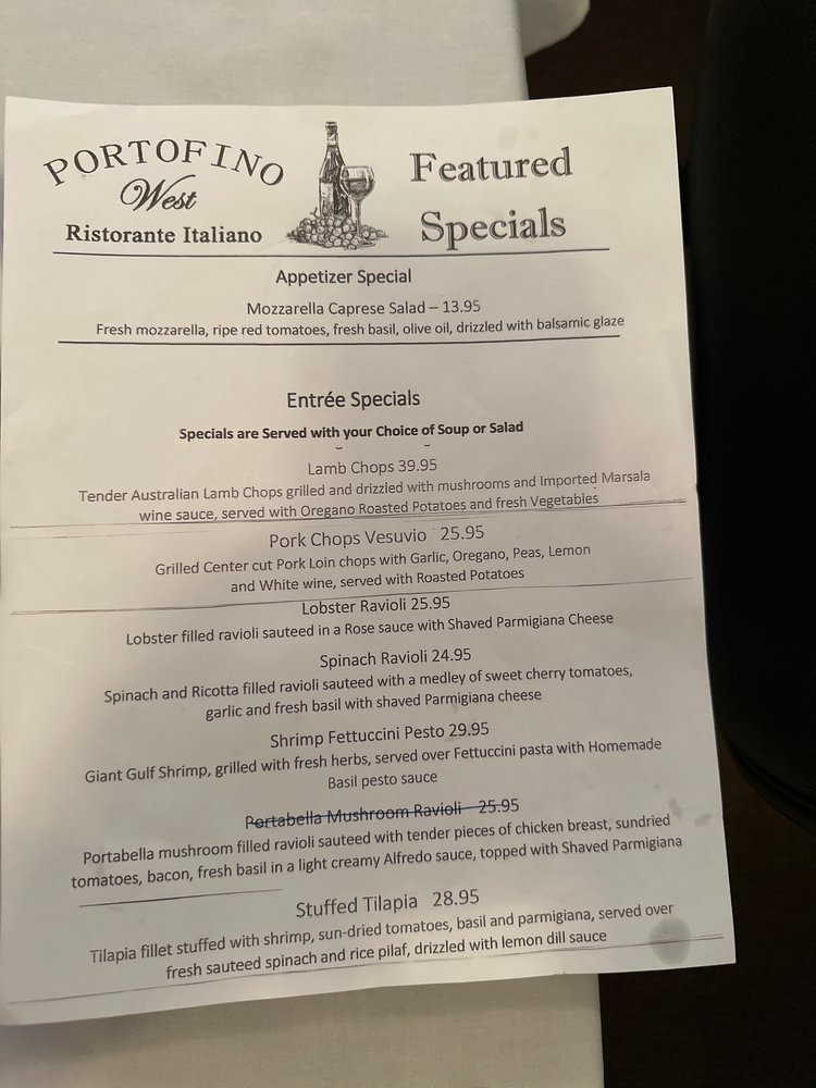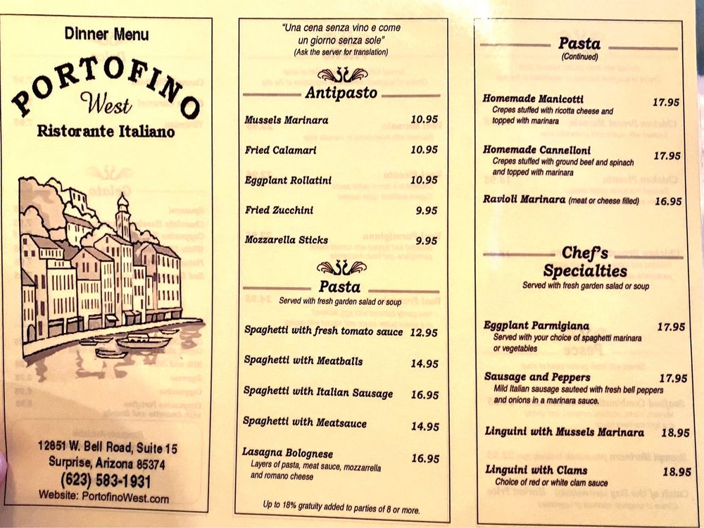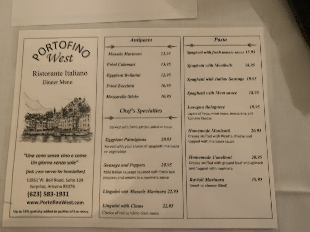 Welcome to Portofino Ristorante West, a delightful haven for Italian cuisine nestled in Surprise, AZ. This restaurant expertly combines authentic flavors with a cozy ambiance, making it ideal for both casual diners and special occasions. The menu boasts a range of mouth-watering dishes including house-made lasagna, tender veal parmigiana, and sumptuous portobello ravioli that highlight traditional cooking techniques. Vegetarian options abound, welcoming everyone to indulge in the culinary experience.